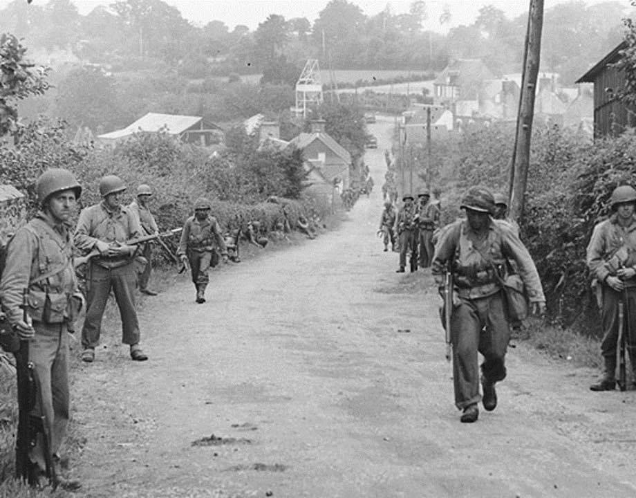 After the breakout from the bocage country in July 1944, American troops began racing south and east. In a desperate gamble to divide and destroy the growing foothold, Germany launched a massive counterattack directed at the high ground surrounding the small town of Mortain. The 30th Infantry Division took the brunt of this attack and heroically held their ground, allowing American reinforcements to begin surrounding the German attack force and leading to the Battle of the Falaise Pocket, making the Allies’ liberation of France all but certain. I’ve described my experiences a little in Smiley’s War, but I’d like to talk about what I wore and carried on the trip here.