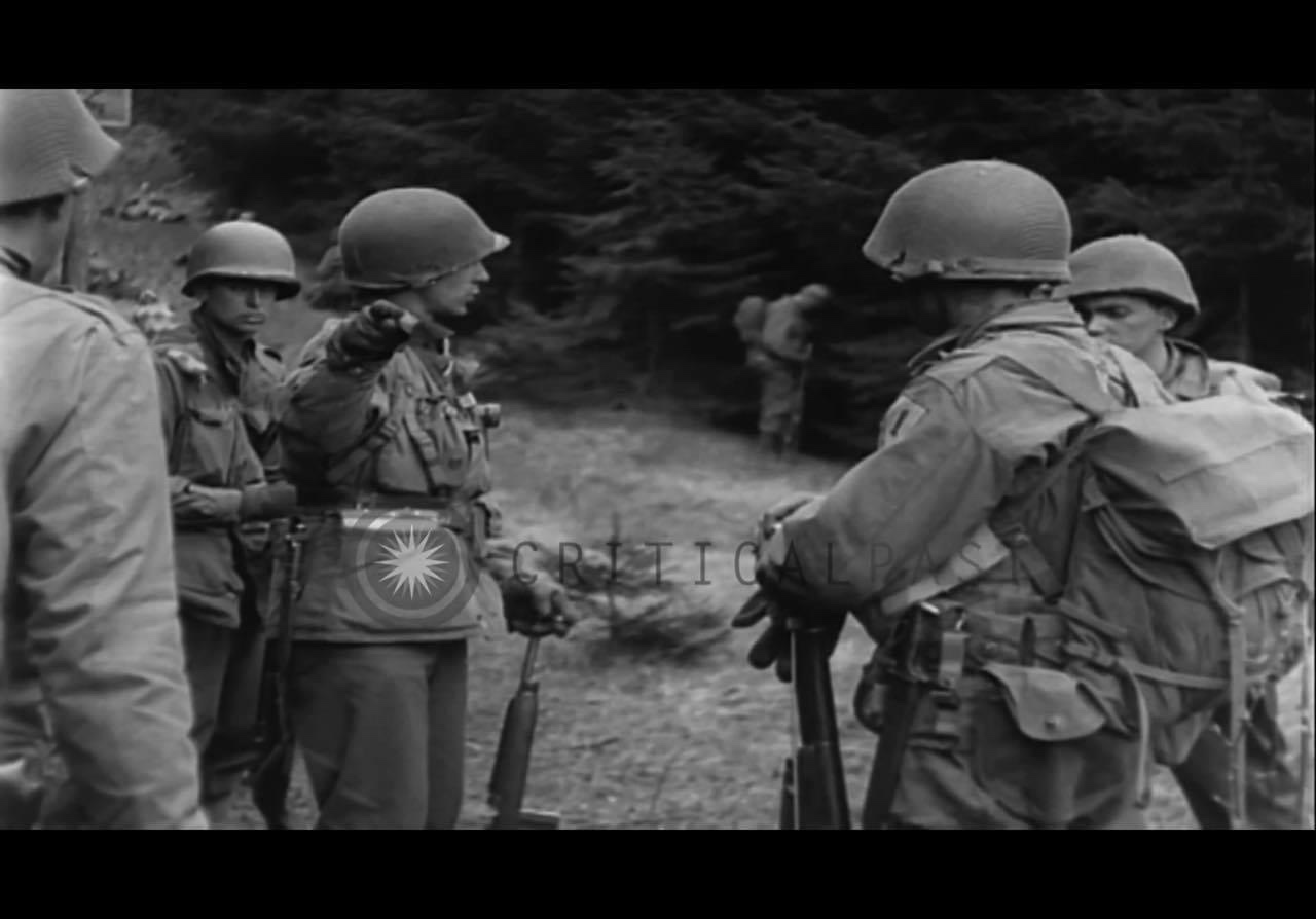 “Before dawn on April 14 we were in trucks and on the road to a place called Sieber. By noon Sieber was far behind us and we were high in the Harz Mountains, en route to St. Andreasberg. Our course was cross-country and through the mountains, up slopes so sheer that we had to pull ourselves up, bleeding fingers clawing desperately for the frail security of tree roots and outcroppings of rock. The thick cushion of pine needles underfoot made a treachery of the most tentative movement, and once a man started to slide, he was fortunate indeed if he could bring himself to a halt before skidding to the bottom, let alone knocking a dozen others into the gully below.”
