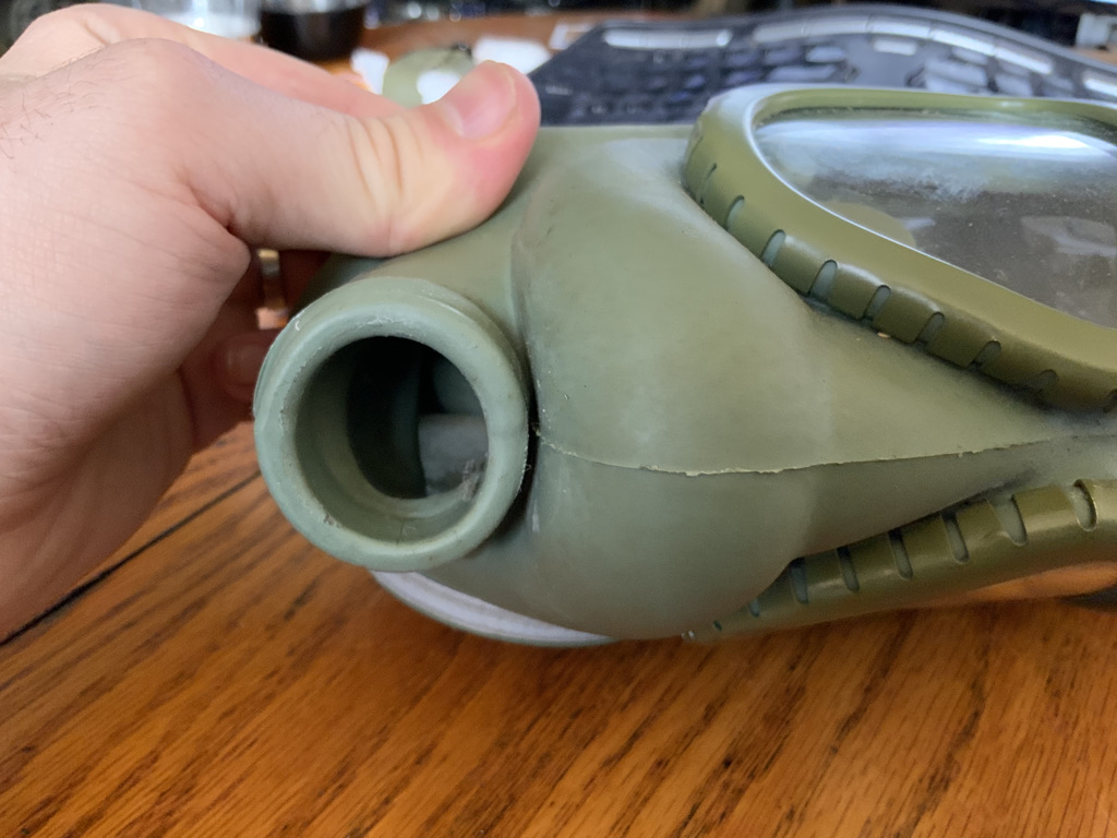 A few other reenactors had suggested converting a Serbian M1 Gas Mask, which is essentially a clone of the later US M9 Gas Mask. While all the parts are virtually identical, the US gas masks came in black rubber instead of grey rubber.